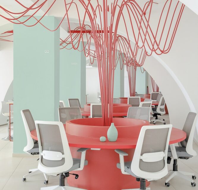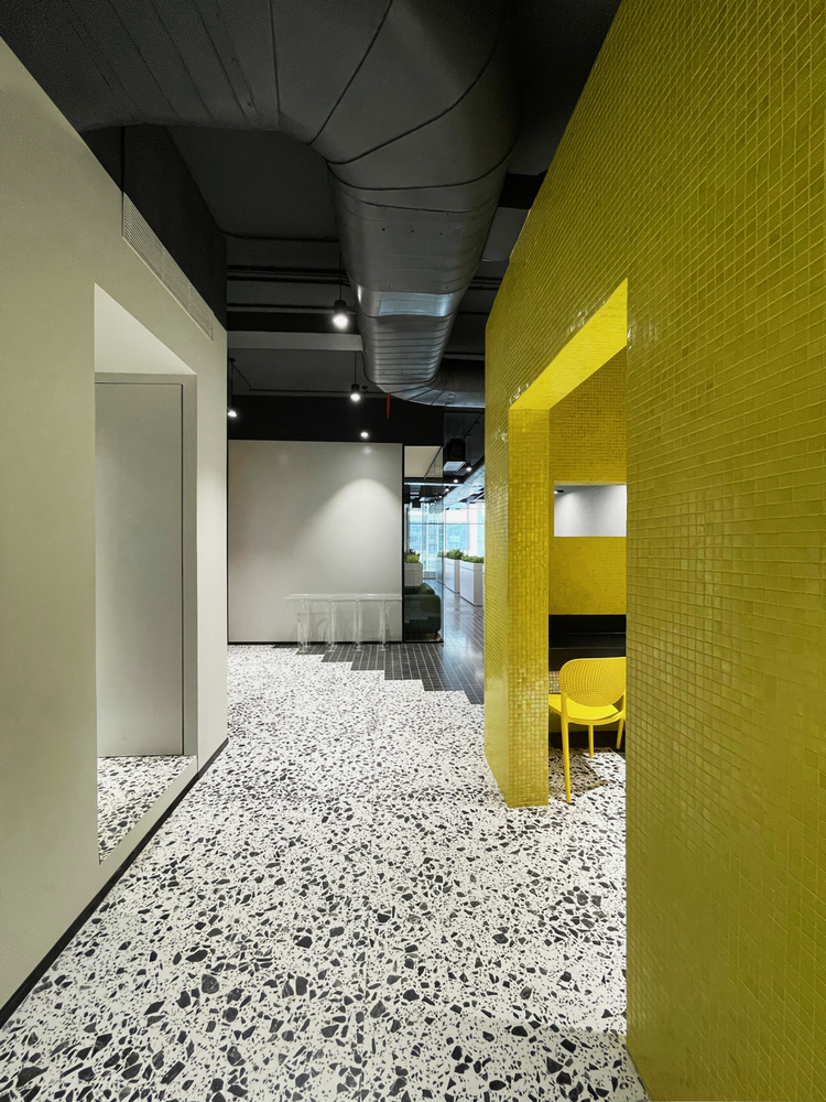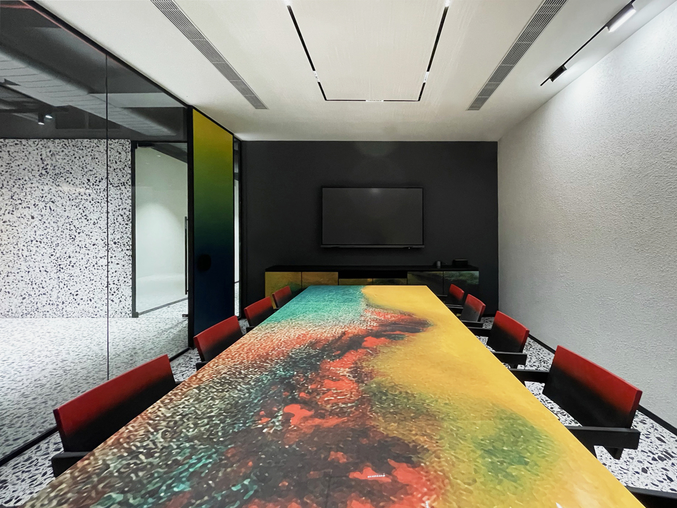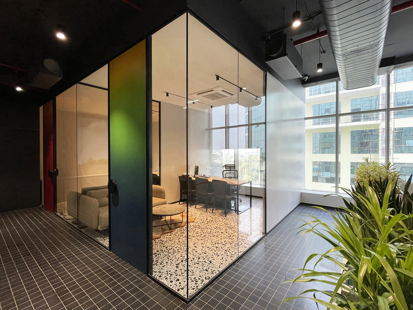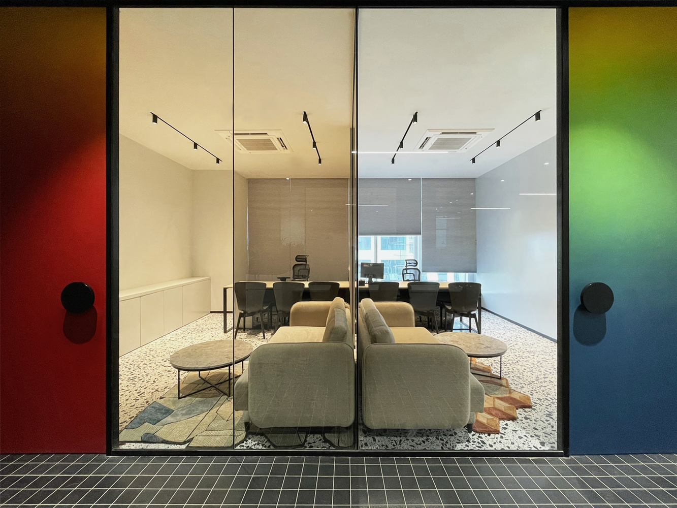 An explosion of texture, color, and form, this design studio celebrates creative chaos with intentional precision. From terrazzo-clad surfaces to gradient glass and sculptural furniture, every element is a conversation starter. Playful yet poised, the space reflects a fearless design ethos where boundaries blur, ideas collide, and creativity thrives unapologetically. Chromatic Design Studio Chennai