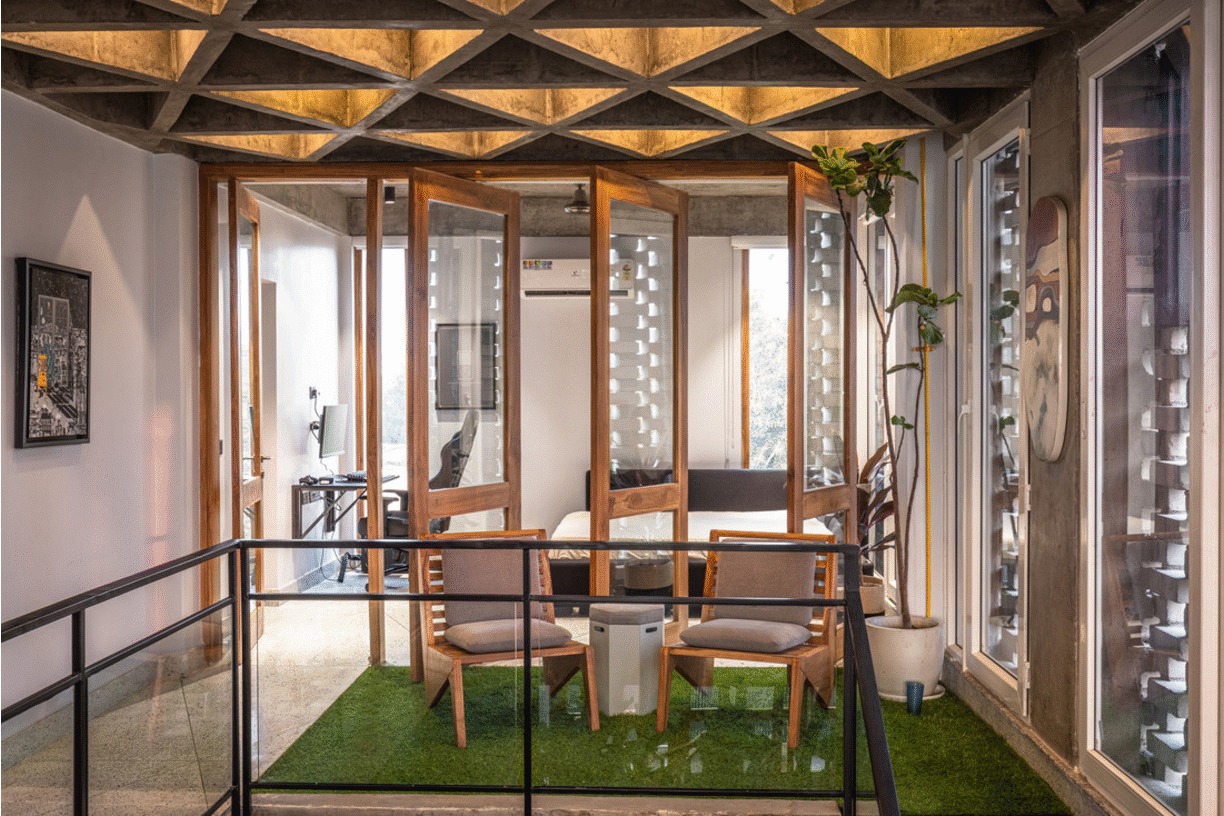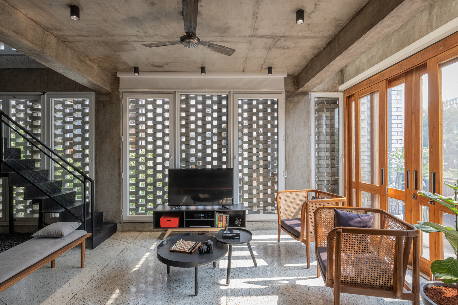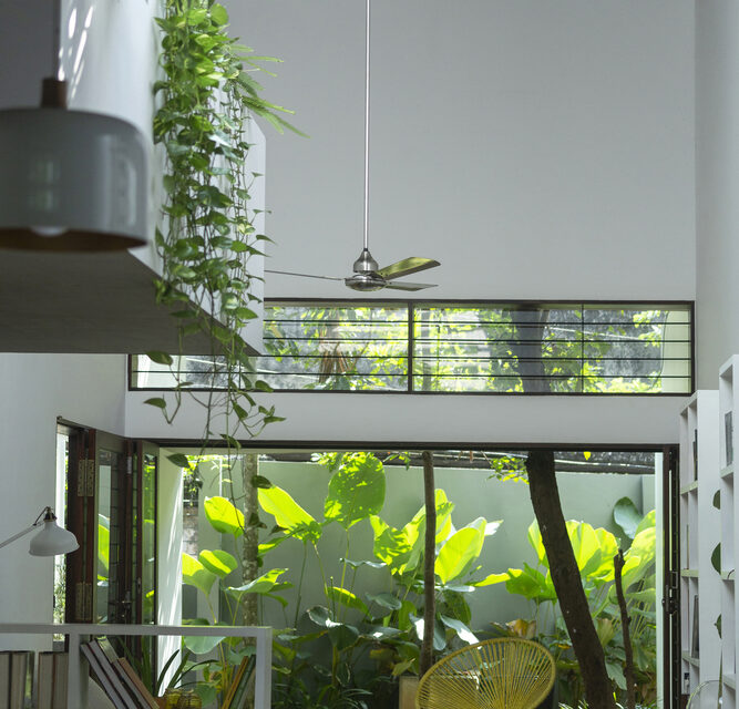 Courtyard Echo is a serene bungalow villa designed around the rhythm of open-to-sky spaces. Anchored by a central courtyard, the home blurs the line between indoors and outdoors inviting in light, breeze, and nature. Earthy materials, soft textures, and timeless architecture come together to create a space that feels grounded, calm, and deeply connected to its surroundings. Courtyard Echo Kerala