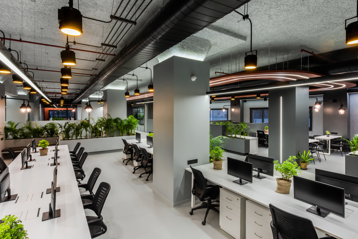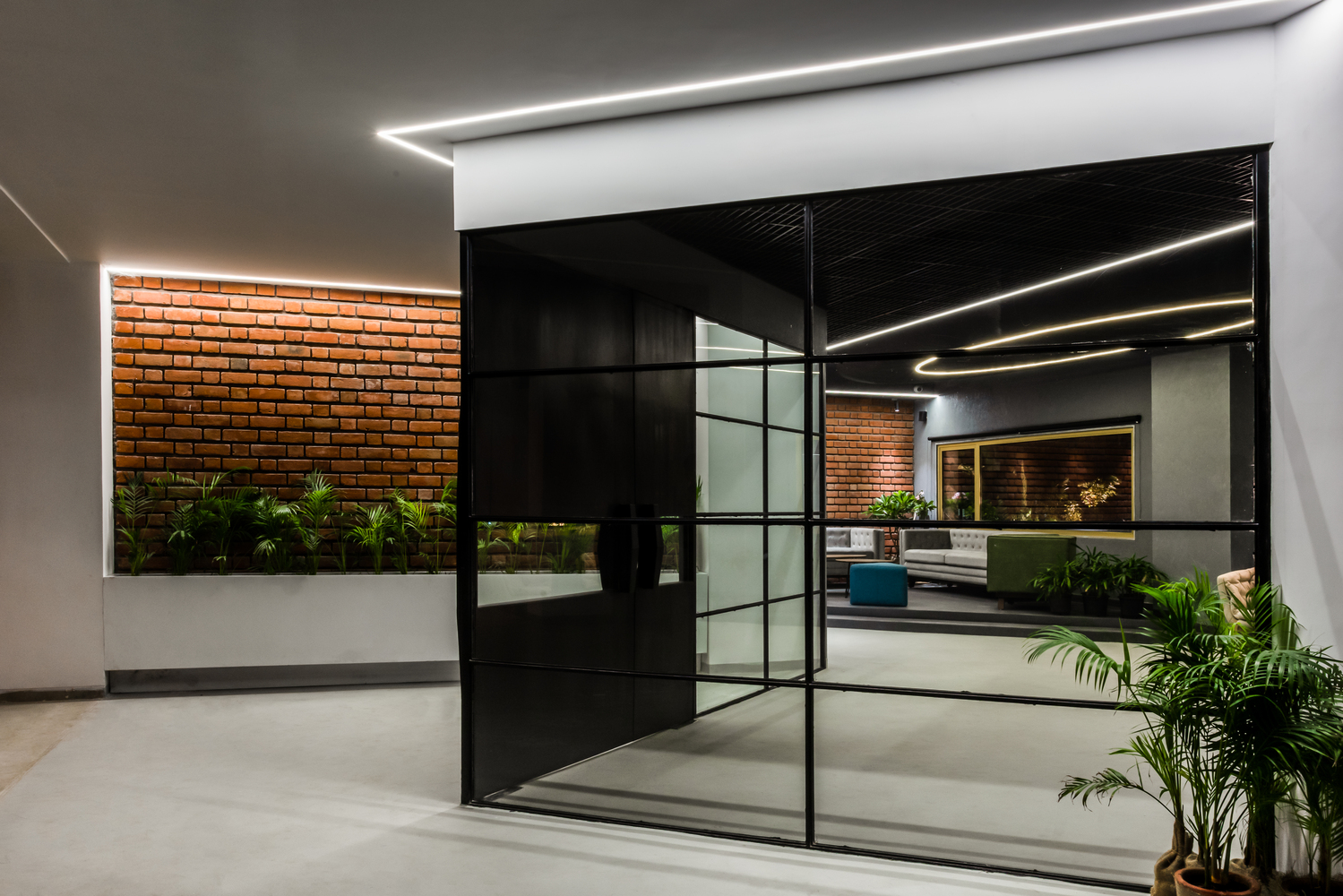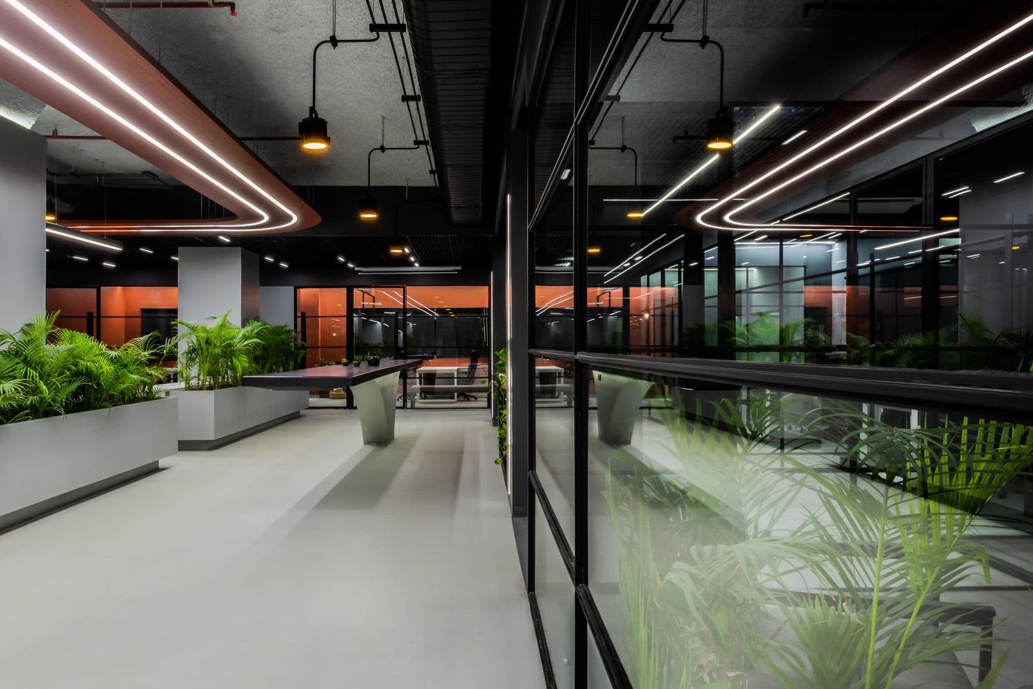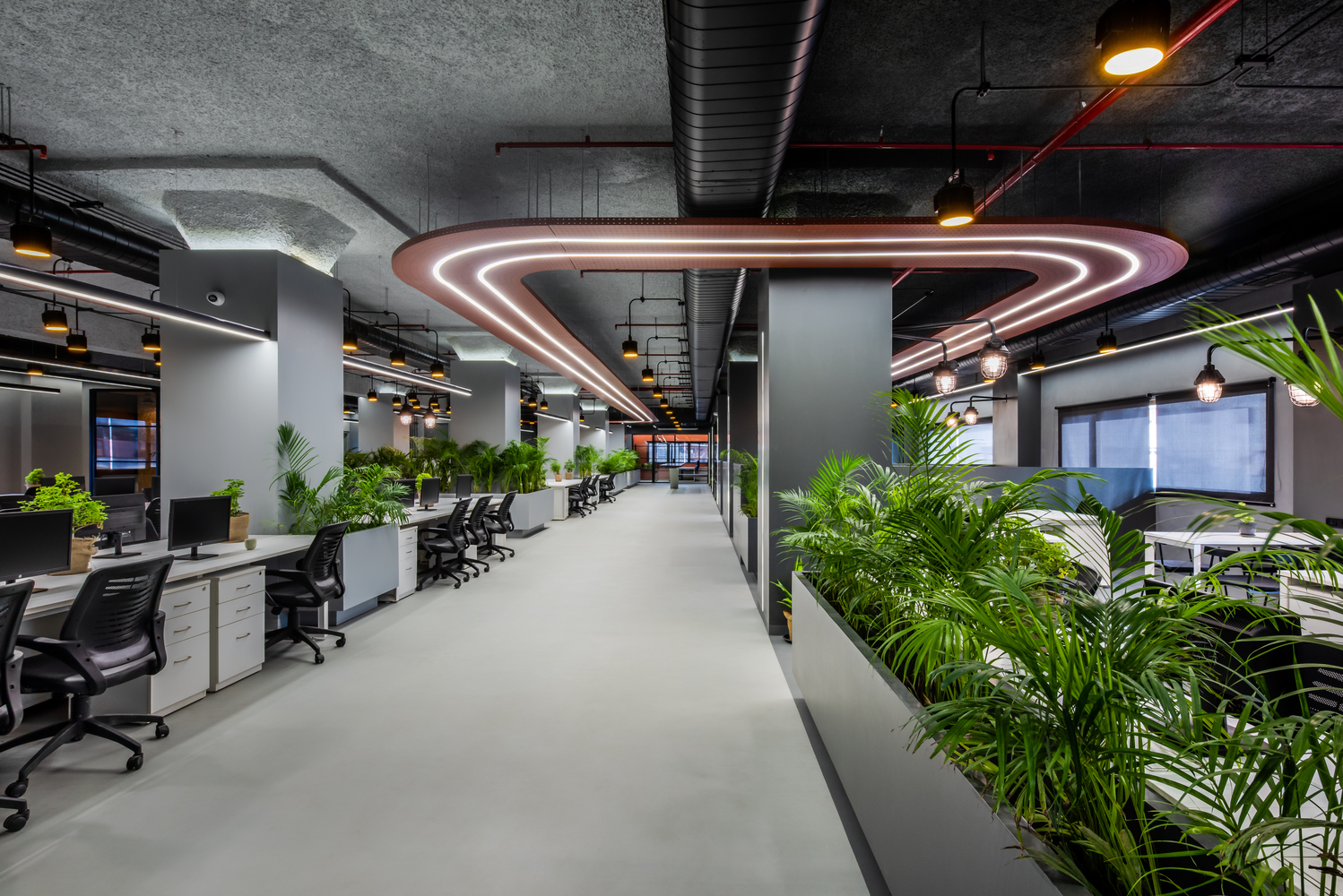 A harmonious blend of modern minimalism and nature-forward design, this Corporate Office redefines workspace well-being. With abundant greenery integrated into every workstation, exposed ceilings, and warm, ambient lighting, the space fosters productivity while promoting calm. Designed for focus, flow, and forward-thinking, this office offers a refreshing break from the conventional.