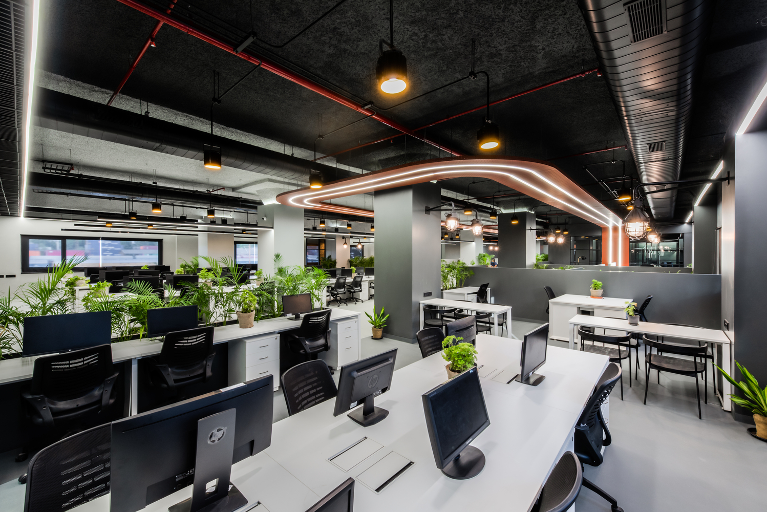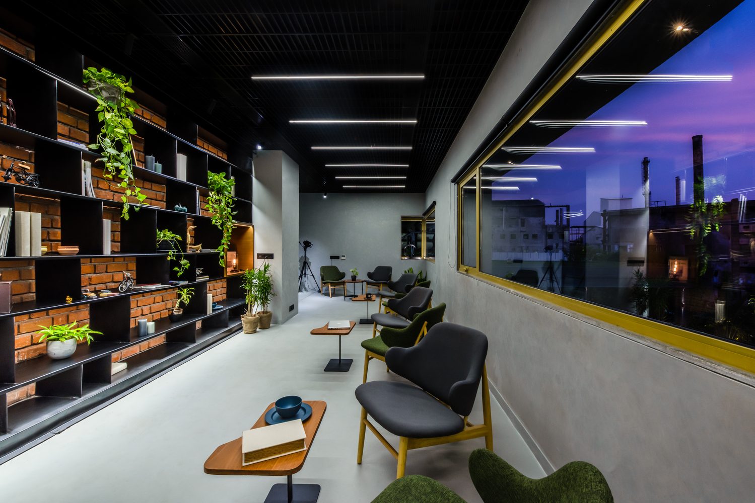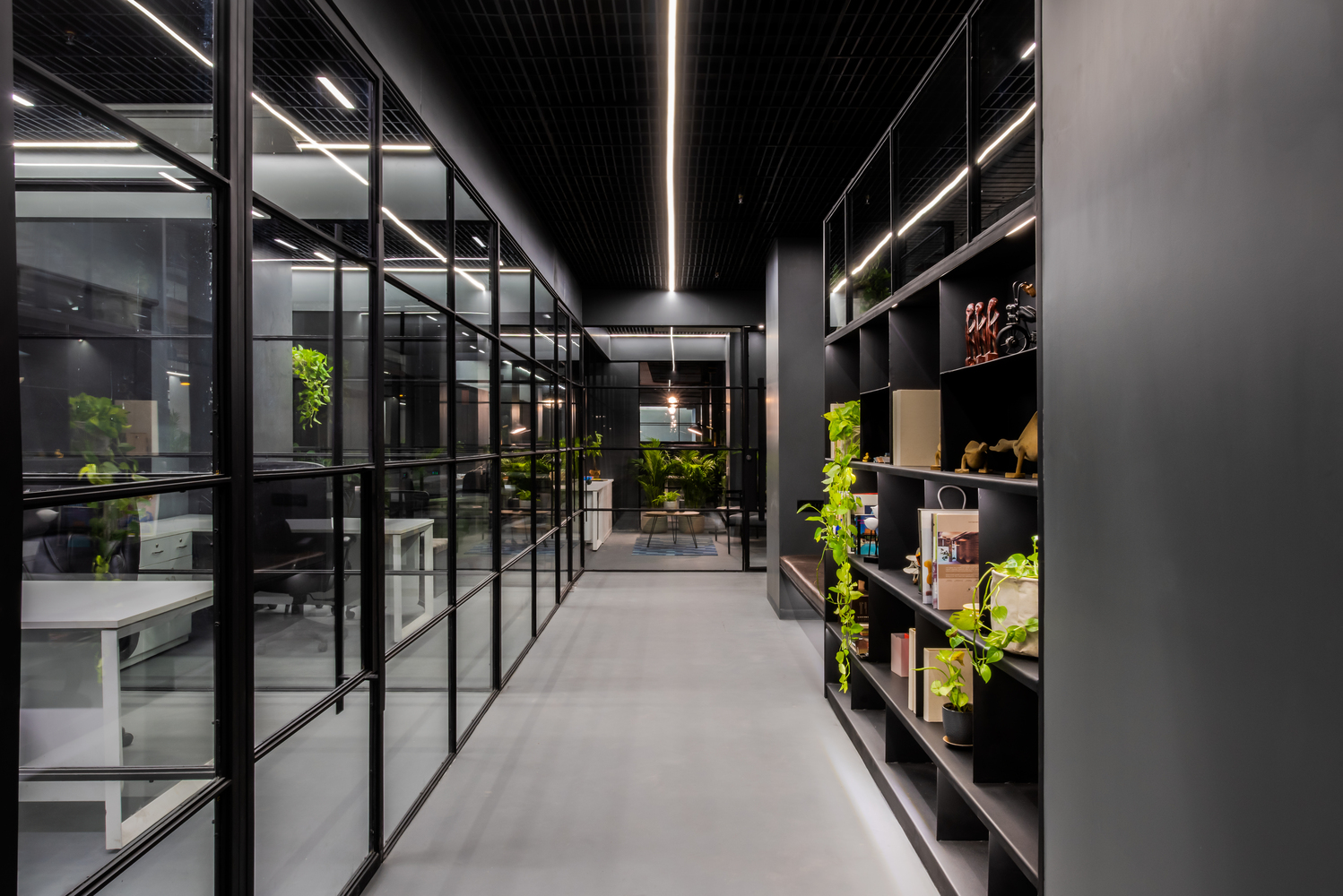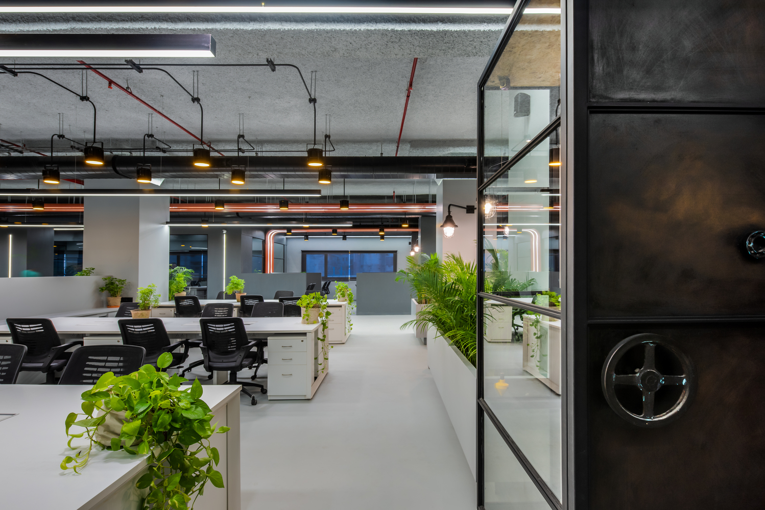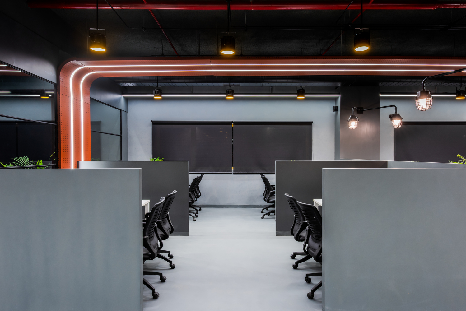 A harmonious blend of modern minimalism and nature-forward design, this Corporate Office redefines workspace well-being. With abundant greenery integrated into every workstation, exposed ceilings, and warm, ambient lighting, the space fosters productivity while promoting calm. Designed for focus, flow, and forward-thinking, this office offers a refreshing break from the conventional.