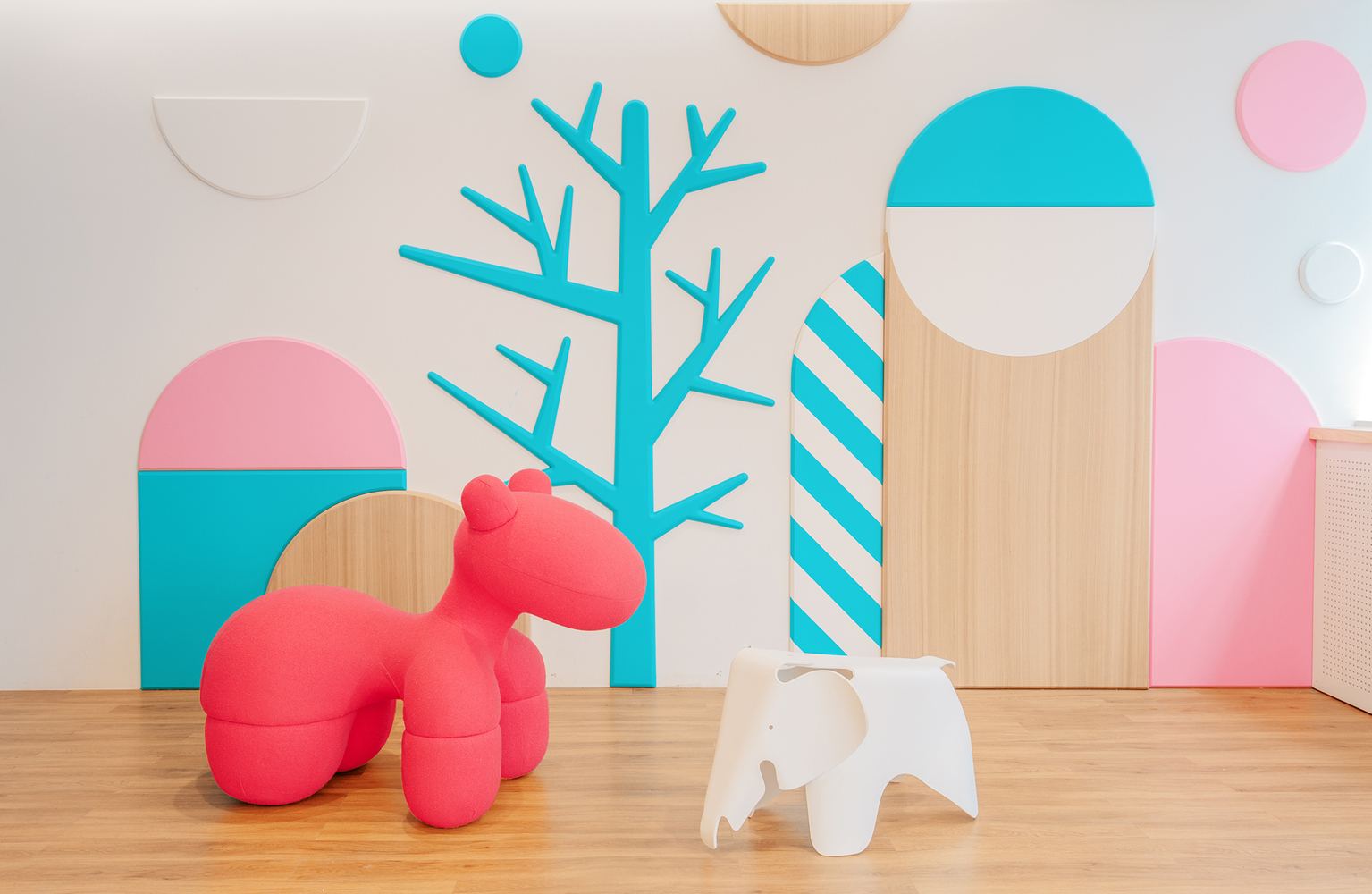 A playful yet calming space designed to comfort young patients, this pediatric clinic uses soft wood tones, cheerful pastels, and imaginative forms to create a child-friendly environment that feels more like a storybook than a hospital. Every element invites curiosity, comfort, and care. Toddler Clinic